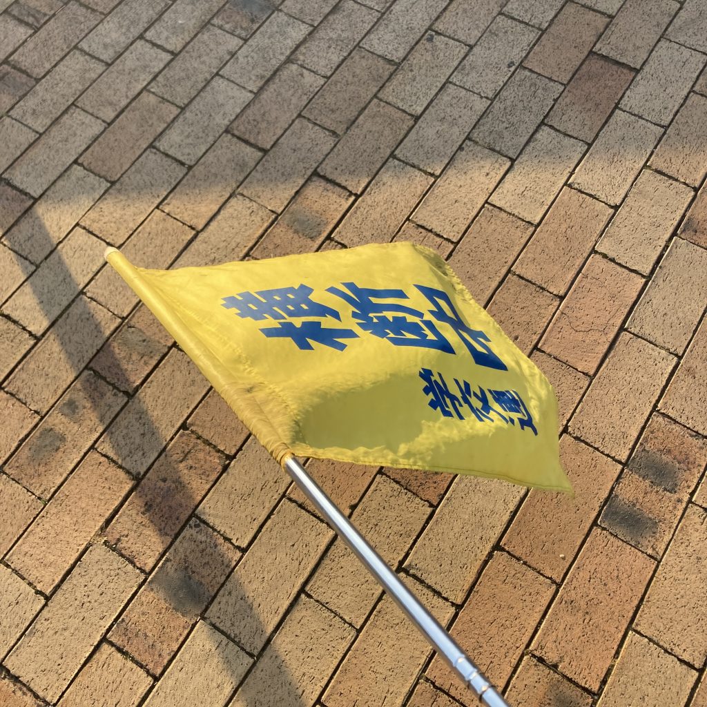 朝の旗振り。