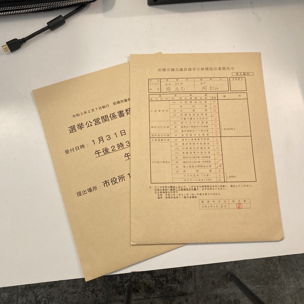 前橋市議会議員選挙立候補届出書類在中。