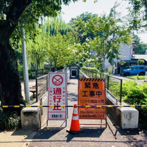 事務所までの道のりが通行止めに。緊急工事中と書かれた看板。期間が2月28日までとなっていてそんなに長い工事なのかと戸惑ったが翌日には無くなっていた。