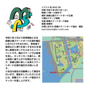 前橋公園スケートボード広場は、騒音などの苦情の恐れがなく、一般の利用者の少ない親水・水上ステージゾーンの噴水の南側で、柳原放水路沿いの広場に整備しております。イベントなどの音量の他にも、様々なご意見やご要望を頂きますが、スケートボード広場でイベントを行うことにより、新たな体験、新たな発見もできる魅力ある公園になると考えております。これからも、スケートボード関連団体の意見や協力を頂きながら、スケートボード広場の管理運営を行いたいと考えております。