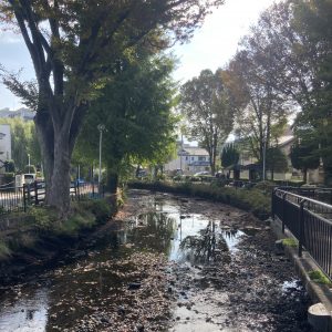 水が抜かれた広瀬川には小さい虫たちがすごい勢いで飛んでいます。