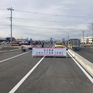 都市計画道路 江田天川大島線の暫定開通のセレモニーに参加しました。昭和40年に都市計画決定された道路です。
