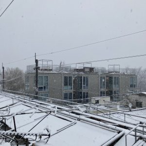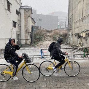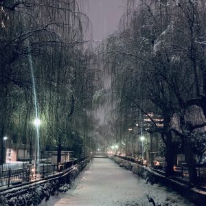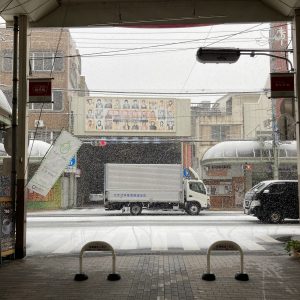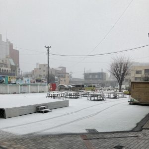 ということで雪が降り、雪の歌が流れてきました。まちなかの様子です。