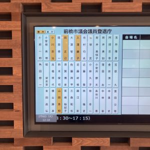 遅れていた政務活動費の収支報告書などで控え室に。2月4日に前橋市長選挙と合わせて行われた前橋市議会議員補欠選挙で当選した2名が早速登退庁パネルに追加されていました。