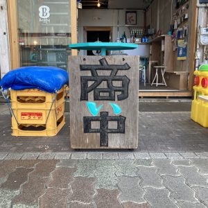 春休みに特にやることもなくソファの上に座り、スマホでゲームをし続けている息子にBentena SHOPの「商い中」看板の塗装という仕事を与えました。