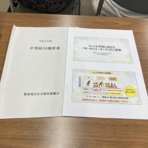 総会後にはポールウォーキングの簡単な講習もあって有意義なものでした。お出かけをしなくなることによってフレイル状態となってしまうリスクが高まります。バス利用により少しの運動と他者とのコミュニケーションが生まれるのでフレイル予防にもなるのではないかと感じています。顧問ということなので全力でサポートしていく所存です。