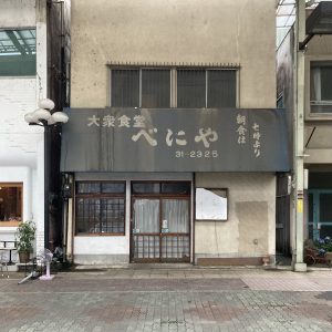 私の事務所ビルの横の「大衆食堂べにや」さんは朝7時から営業していたようです。私が前橋に戻ってきた時にはシャッターが半開きになっていて常連さんがその半開きのシャッターを潜って店内に入っていくというなんとも個性的なお店でした。そのうちその半開きのシャッターはさらに降りてひっそりと閉店しました。その後、店主の方が亡くなって完全に開かずのシャッターとなってしまっていましたが昨日そのシャッターが完全に上がっていました。