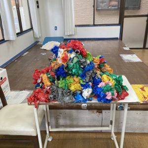1日1色施設内に貼られているテープで作るオブジェ。このボリュームで4〜5ヶ月分だそう。