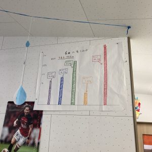壁に掲げられている6月の売り上げ表。