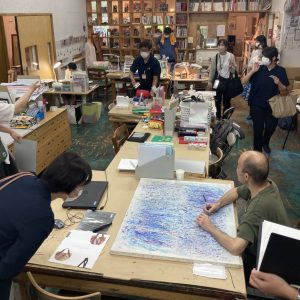 続いては工房集へ。工房集はアトリエ、ギャラリー、ショップ、カフェを備えた施設です。工房集プロジェクトとしては埼玉県南部を中心に、通所・入所施設など22の事業を展開し、利用者は300名まで増加しているとのことです。13ヶ所ありアトリエで、約150人が様々な表現活動を行なっています。