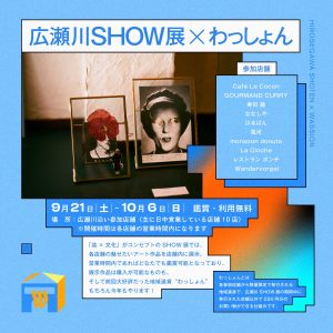 「店×文化」がコンセプトの広瀬川SHOW展では、各店舗の魅せたいアート作品を店舗内に展示します。営業時間内であればどなたでも鑑賞可能となっており、展示作品は購入が可能なものもあります。各参加店舗を回遊してもらう仕組み、地域通貨“わっしょん”もあるので、店舗に伺った際には店員さんに「わっしょんありますか?」と聞いてみてください。きっと素敵な旅が始まります。