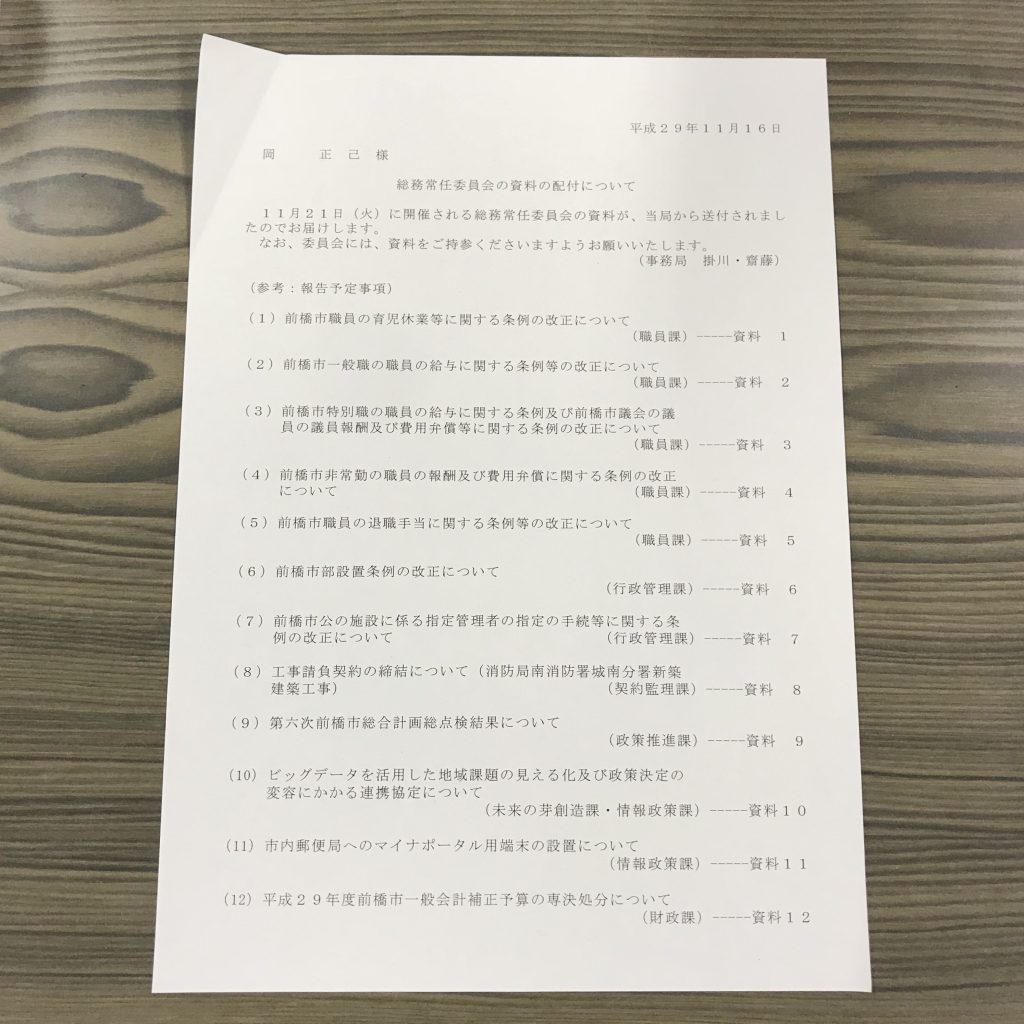 12月議会で上程される。12月議会は11月29日に開幕する。