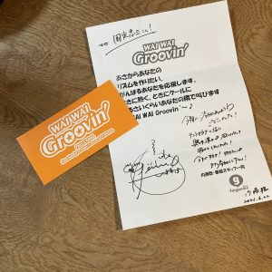 ラジオネームは国定忠三(くにさだちゅうぞう)である。この手書きメッセージのホスピタリティに感動した。これからも群馬の朝はワイグル(WAIWAI Groovin’)で決まり!