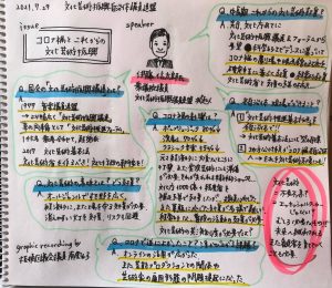 今回のセミナーのテーマは「コロナ禍とこれからの文化芸術振興」である。略してコロこれ文化芸術。板橋区南雲議員のグラレコが見事なのでアップしておく。