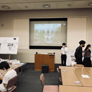 我々の班はとにかく外階段から屋上へ、中庭から螺旋階段で屋上へと様々なところへ流動的に動けるようにした。また屋上を芝生にし、中央には本の小屋があり24時間誰でも借りて返せる。芝生で寝ることもできる。市役所に隣接しているので市役所にも行けるようにしてしまおう。とかなり自由な発想でとても楽しかった。